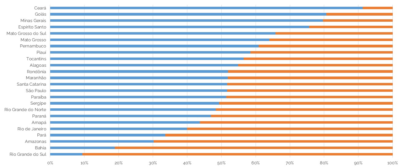 Fonte: Sistemas Estaduais de Avaliação 2023 e 2024