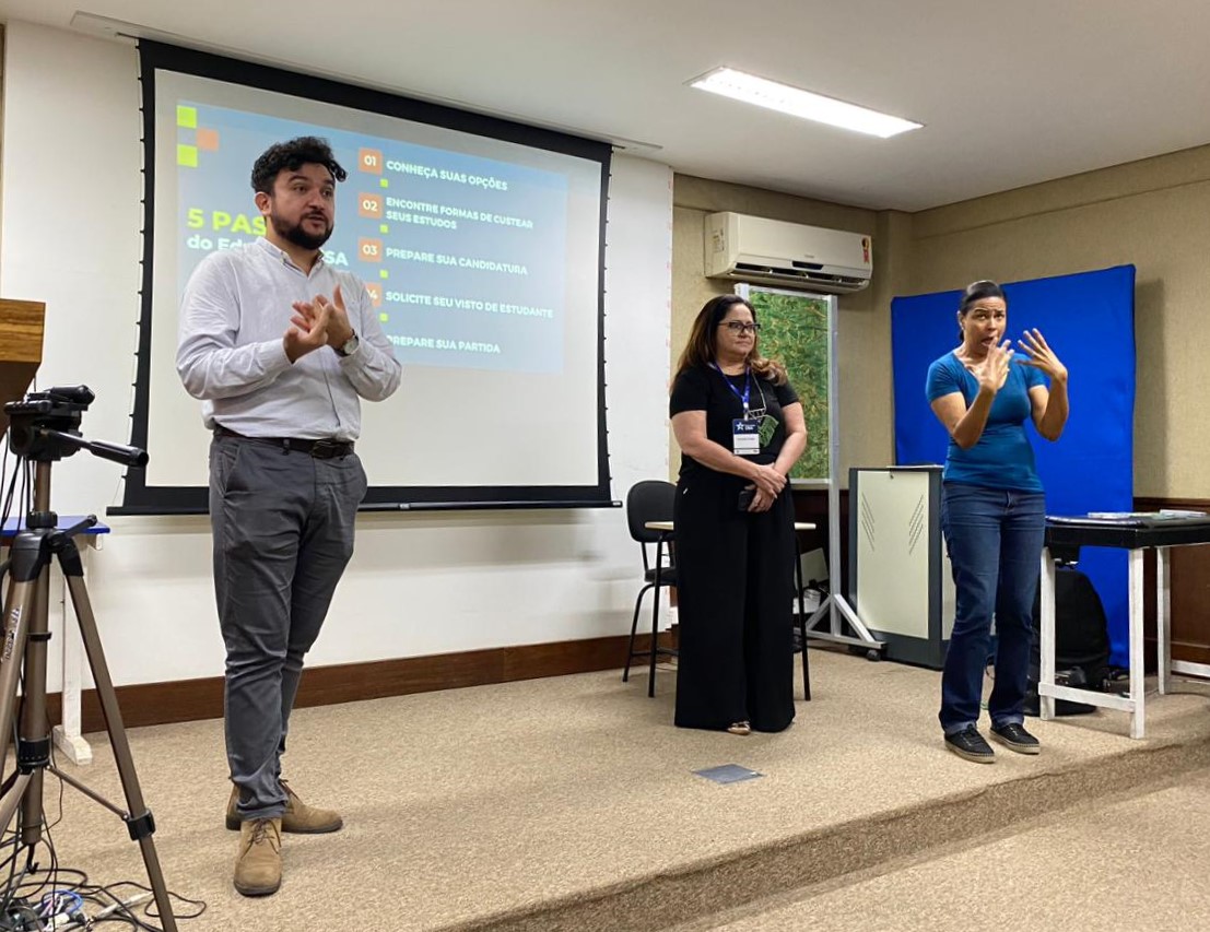 Além de explicações sobre o processo de candidatura para as instituições estadunidenses e um panorama do sistema de ensino superior nos EUA, as turmas de primeiro, segundo e terceiro anos também receberam orientações sobre como solicitar o visto de estudante. Ainda foram abordadas questões específicas sobre o acesso de pessoas surdas à mobilidade acadêmica internacional e a legislação local que garante direitos às pessoas com deficiência.