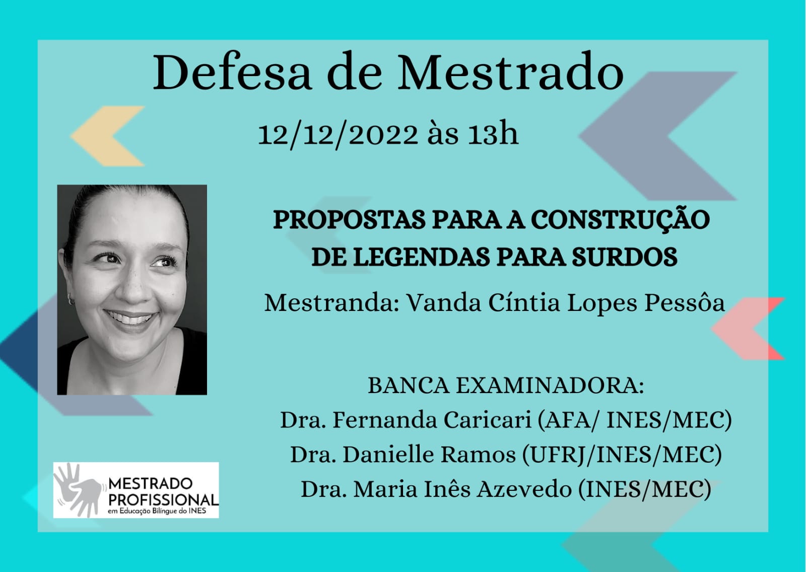 Convite: Defesa de dissertação de mestrado da mestranda Vanda Cíntia Lopes Pessôa