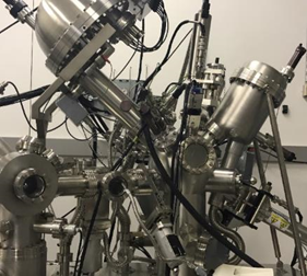 A partir de um fenômeno quântico, o efeito túnel, o microscópio de tunelamento por varredura (STM) é capaz de obter imagens com resolução atômica de superfícies. O VT STM XA (Scienta Omicron) é um microscópio de temperatura variável e pode operar entre 100 K e 650 K. Além de possuir o microscópio de tunelamento por varredura (STM), o sistema UHV-VT STM possui uma série de facilidades para o crescimento de filmes finos sob condições de ultra-alto vácuo, tais como: evaporadoras por feixe de elétrons, canhão de íons, aquecedores e um canhão de elétrons para experimentos de difração de elétrons de baixa energia (LEED) e espectroscopia de elétrons Auger (AES).