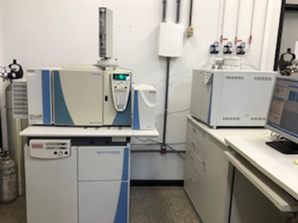 Delta V Advantage com interface de forno de combustão (para δ13C e δ15N) e forno de conversão térmica (para δ18O e H/D) Isolink II, acoplado ao cromatógrafo a gás Trace GC Ultra com amostrador automático AS 3000, Thermo Fisher Scientific, bem como ao analisador elementar FLASH 2000 HT PLUS. Utilizado em análises diversas de composição isotópica, como determinação de isótopos estáveis de carbono de uma amostra usando análise elementar ou determinação específica de isótopos estáveis de carbono de um composto presente em uma amostra usando cromatografia gasosa.