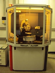 Descrição: Difratômetro de raios X operando em diversas geometrias de difração (Theta-2Theta; angulo rasante; modo iso-inclination, Ω, para medição de tensões residuais), equipado com diversos acessórios especiais: tubos de raios X de Cu, Cr, Co e Mo; detector cintilador NaI(Tl); monocromador de grafite secundário; câmara de baixa e alta temperaturas Anton-Paar TTK450; sistema de controle de umidade e ambiente de gases.