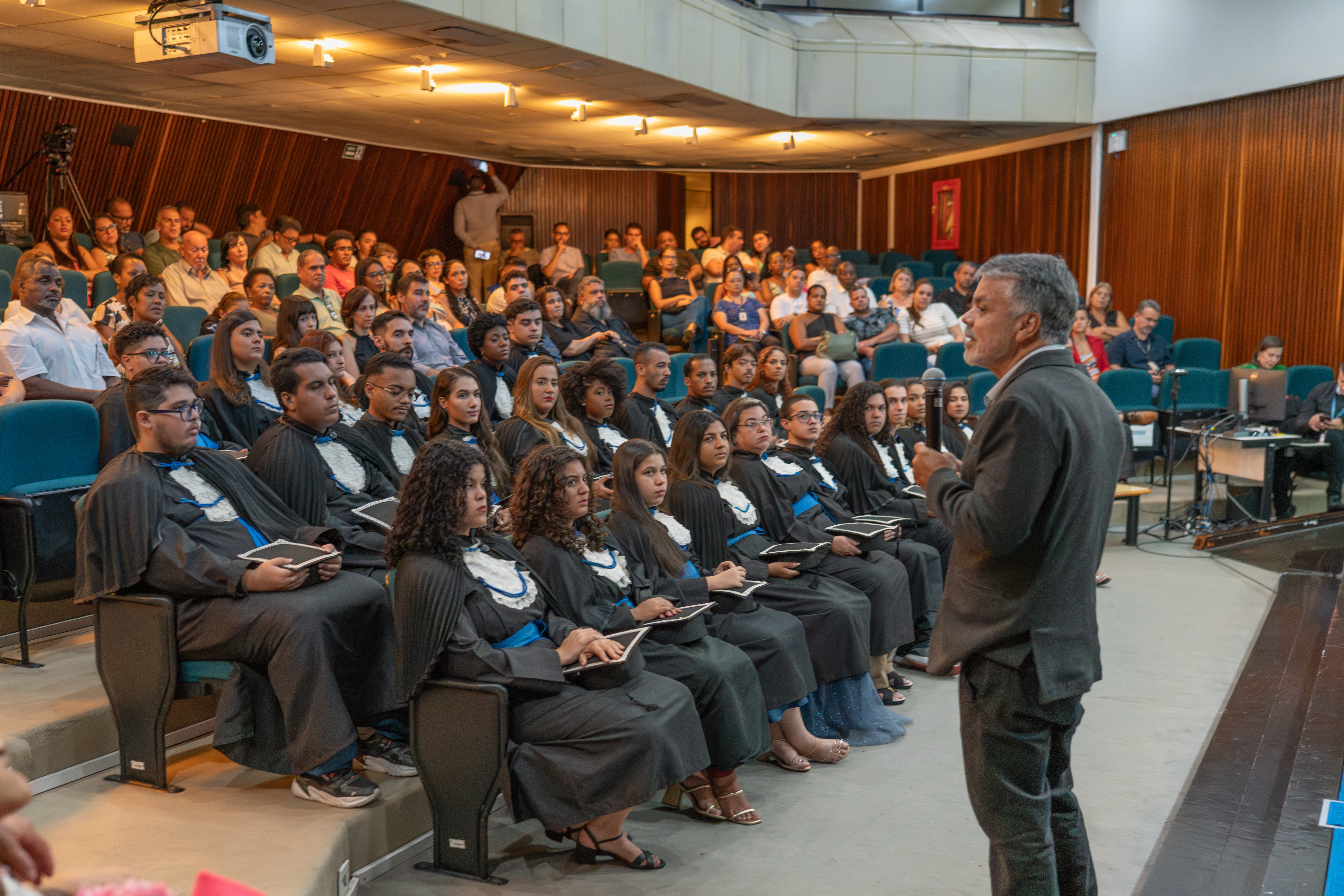 A formatura também foi um momento de reconhecimento aos professores, colaboradores e familiares, cujo apoio foi essencial na trajetória dos estudantes. As turmas prestaram homenagens ao corpo docente, simbolizando a gratidão pelo aprendizado e pela orientação recebida ao longo do curso.