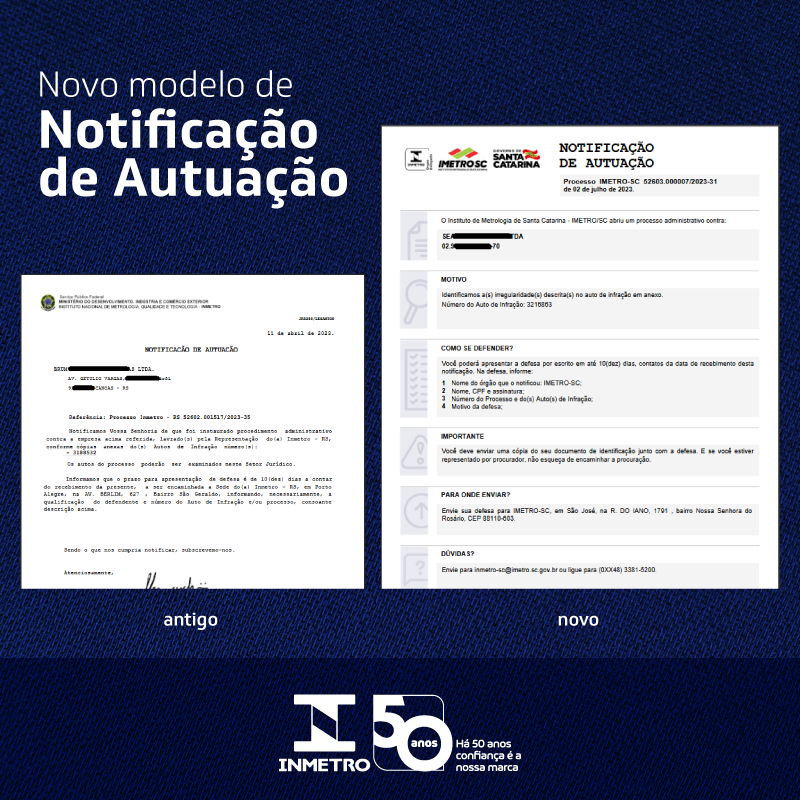 “O novo modelo é mais objetivo e tem visual amigável, destacando as informações importantes, como o motivo da autuação, e tornando mais claras as orientações sobre como as empresas podem se defender”, afirma o presidente do Inmetro, Márcio André Brito.
