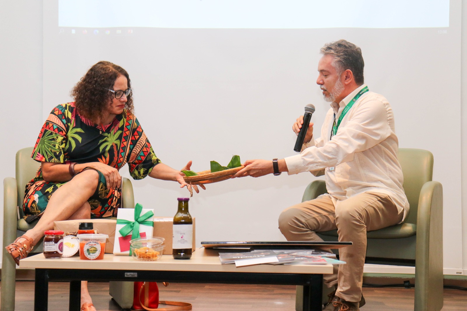 Para homenagear a ministra e as mulheres cientistas, o Inpa preparou alguns momentos simbólicos: mulheres sentadas no centro do auditório, mulheres com a palavra e produtos que representam resultados de pesquisas do Inpa e o potencial da bioeconomia da Amazônia. Entre estes, cogumelos comestíveis coletados no campus do Inpa, quadro com reprodução de pintura à mão de palmeiras de açaí do ilustrador botânico Felipe França, biojoias de jarina, geleia de puruí, abacaxi regional desidratado e taioba cozida.