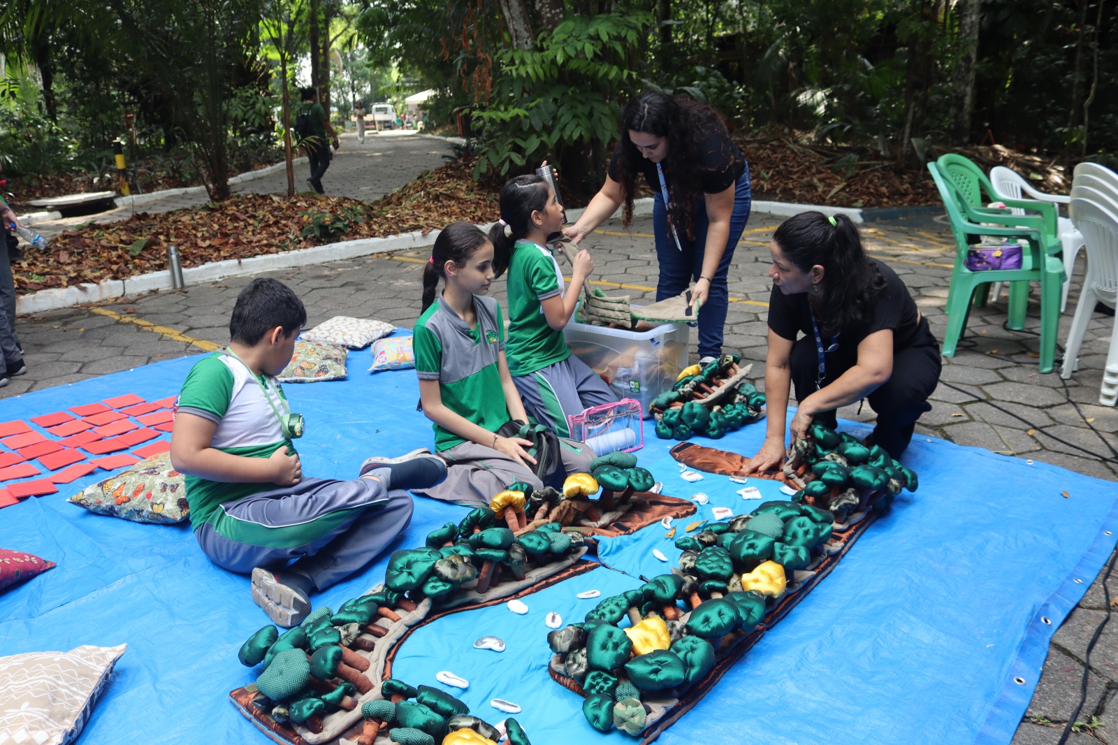 “Eu me encantei com esse lugar, achei muito legal. Estou me divertindo muito e espero vir mais vezes”, conta Lívia Hadassa, 10 anos, que brincando com jogo da memória e o quebra-cabeça aprendia sobre a importância dos insetos aquáticos como indicadores de qualidade da água e do ambiente.