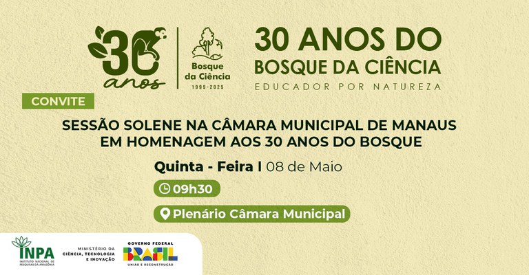 A cerimônia será aberta ao público e faz parte da celebração das três décadas de contribuição do Inpa, unidade de pesquisa do Ministério da Ciência, Tecnologia e Inovação (MCTI), à popularização da ciência, educação ambiental e à preservação da biodiversidade. Em 15 de abril, o Bosque, servidores e colaboradores do Inpa foram homenageados na Assembleia Legislativa do Estado do Amazonas (Aleam).