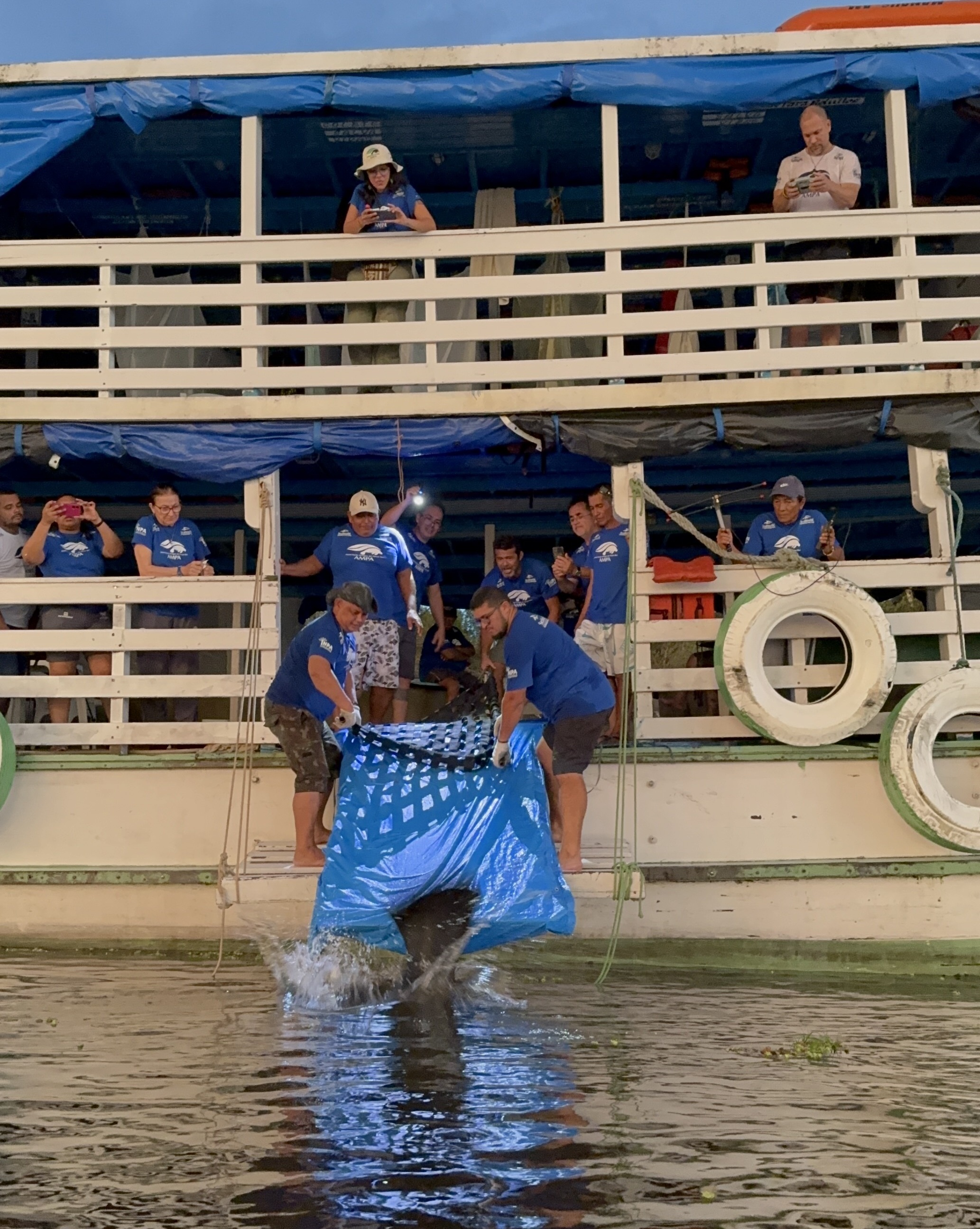 Amazonas - Às margens do rio Purus, cinco peixes-bois, reabilitados pelas equipes da Associação Amigos do Peixe-boi (Ampa) e do Instituto Nacional de Pesquisas da Amazônia (Inpa/MCTI), ganharam a liberdade no fim de semana (2 e 3 de maio). A ação faz parte do ciclo de atividades em prol da conservação da espécie, realizada pelo o Projeto Peixe-boi, que recebe o apoio financeiro do Seaworld Conservation Fund.