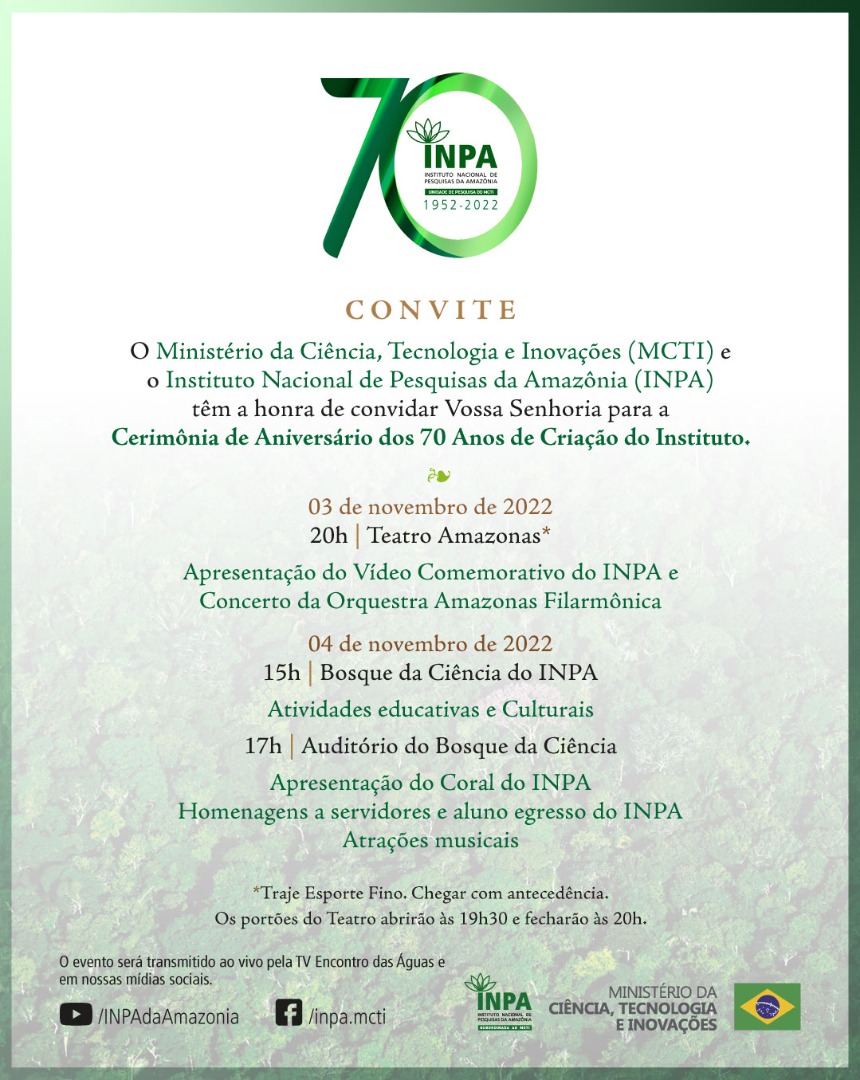 Convite - Aniversário de 70 Anos de criação do Inpa