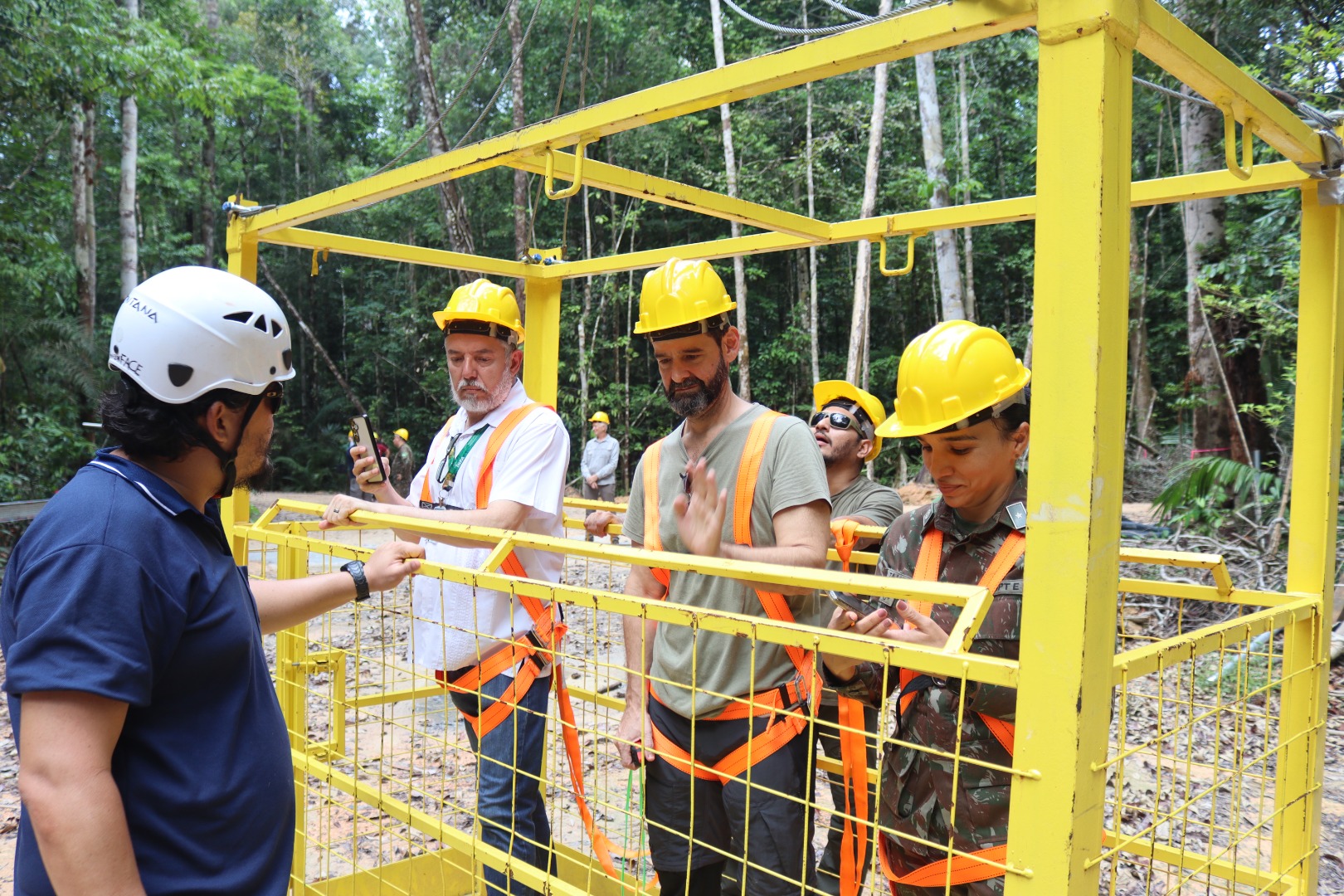 Em seguida, o grupo seguiu para a base do Programa AmazonFace, onde foram recebidos pelo coordenador Beto Quesada e pelo gerente operacional Bruno Takeshi. Lá, conheceram as novas instalações e as metodologias de pesquisa do programa, que é um experimento de campo que irá expor a floresta madura a uma concentração de CO₂ prevista para o futuro, usando a tecnologia “Free- Air CO₂ Enrichment” (FACE).O roteiro terminou na base do Programa de Grande Escala da Biosfera-Atmosfera na Amazônia (LBA/Inpa-MCTI), onde os gerentes Hillândia Brandão e Bruce Forsberg apresentaram a importância das torres de observação para estudar as interações entre a floresta e a biosfera. A visita incluiu uma parada na torre K34, com 54 metros de altura, a primeira do programa LBA, que já conta com 25 anos de operação.