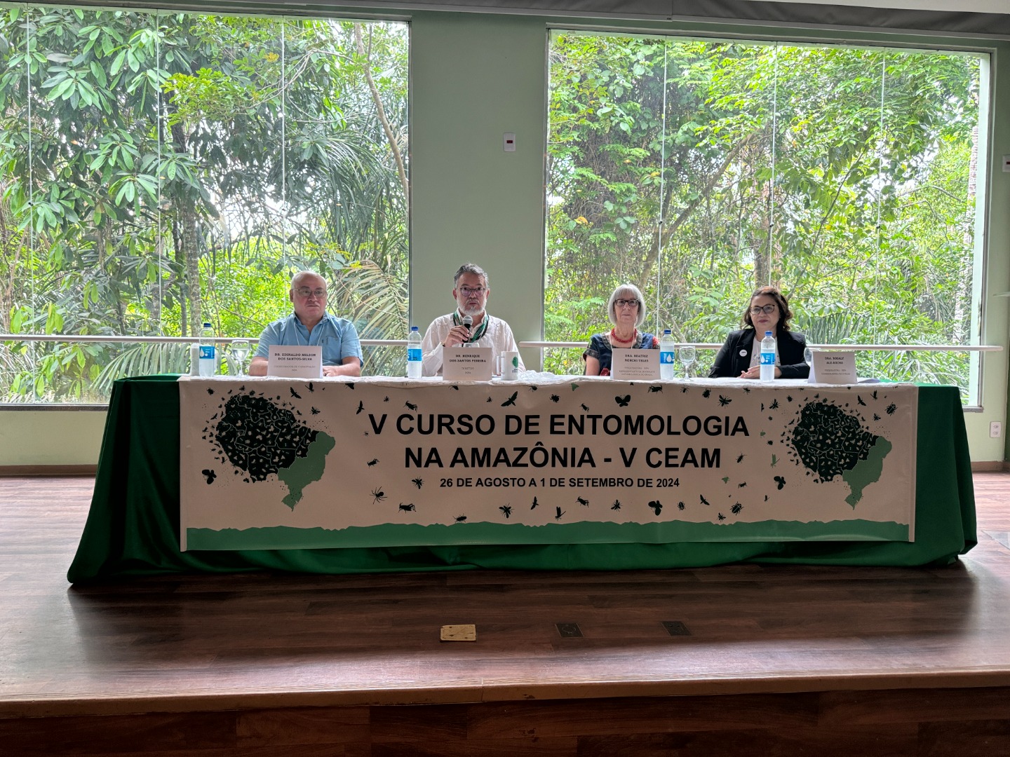 Participaram da mesa de abertura o diretor do Inpa, o professor Henrique Pereira, a presidente da comissão do curso, pesquisadora Rosaly Ale-Rocha, e o coordenador de capacitação, o pesquisador Edinaldo Nelson, e a representante da Sociedade Entomológica do Brasil (SEB), a pesquisadora Beatriz Ronchi Teles.Pereira enfatizou a oportunidade única de reunir estudantes da área para compartilhar conhecimento e também atrair futuros estudantes para o Instituto. “O objetivo do curso é atrair a atenção dos jovens no campo da entomologia e quem sabe aqui então também futuros estudantes que estão fazendo a ação do Inpa. Uma imersão com muitas atividades, certamente vai marcar a vida desses futuros entomólogos brasileiros”, pontua o diretor.