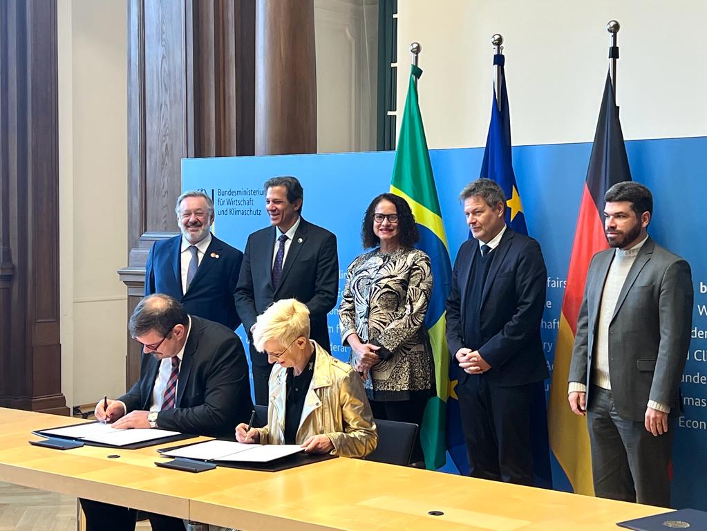 Clezio Marcos De Nardin, Diretor do INPE e Prof Dr.-Ing. Anke Kaysser-Pyzalla, Presidente do Conselho Executivo do DLR, na assinatura da Carta de Intenções firmada entre o INPE e O DLR.