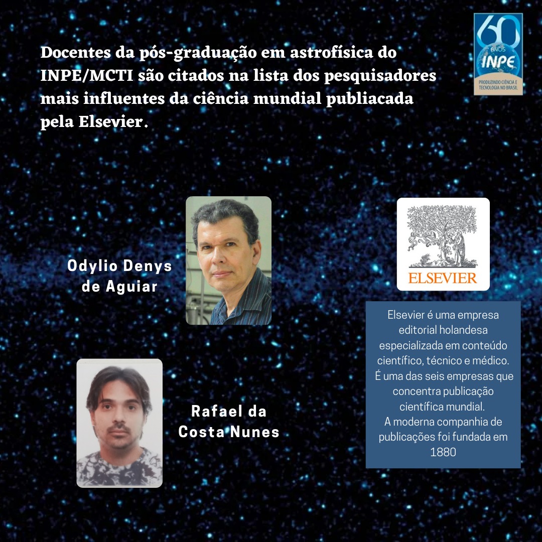 Docentes da pós-graduação em Astrofísica do INPE/MCTI são citados na lista dos pesquisadores mais influentes da ciência mundial