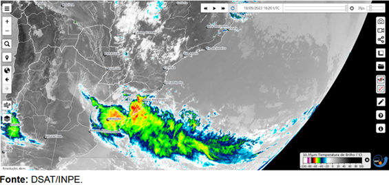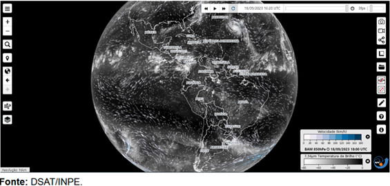 Interface gráfica da aplicação DSAT. Acesso a partir do endereço público www.cptec.inpe.br/dsat.