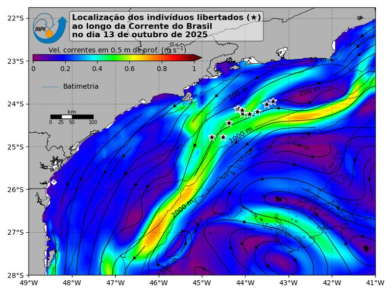 “O acompanhamento oceanográfico da soltura, realizado com base em dados de satélites, permite identificar as condições favoráveis da Corrente do Brasil e compreender melhor os processos oceânicos que influenciam as rotas migratórias das espécies”, explica Milton Kampel, pesquisador do INPE. O oceanógrafo Vitor G. Paiva também participou da ação, como colaborador do Instituto.
