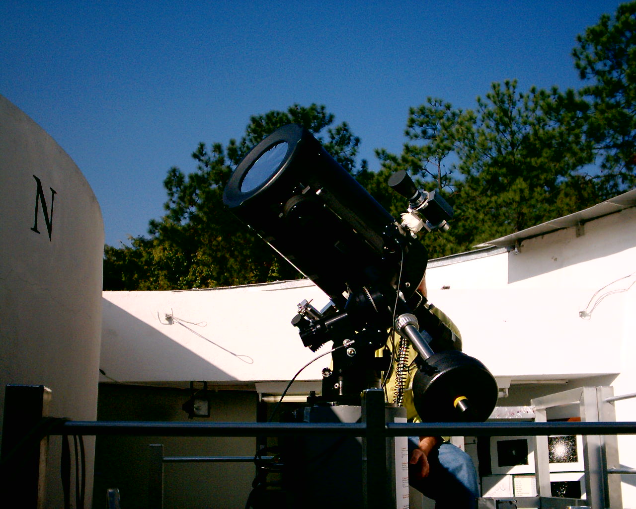 Das 14h às 16h: observação visual do Sol com um telescópio portátil adaptado com filtro solar na parte externa do Miniobservatório mais visitação guiada às instalações do observatório.