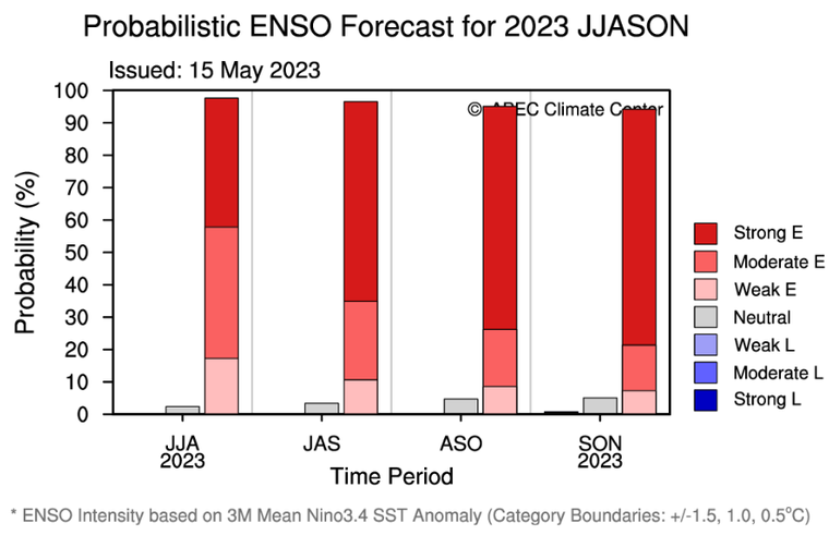 Figura 2 : Previsão probabilística de ENOS do APCC. Fonte: APEC Climate Center.