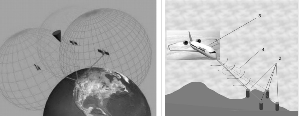 O SISTEMA DE AERONAVEGAÇÃO VIA RETRANSMISSÃO DE SINAL DE SATÉLITES E RECONHECIMENTO DE ALVOS caracterizado por discernir via vários correlatores ecos de sinais GNSS retransmitidos pela aeronave, associar ecos específicos a elementos singulares do terreno via posição relativa entre os alvos a partir de mapas digitais e sua posição aproximada obtida diretamente via GNSS, e eventuais dados de altímetro de precisão, capaz de calcular sua posição com precisão suficiente para pousos seguros até mesmo em locais de pouca infraestrutura de apoio a pousos e decolagens. Como o nível de transmissão de sinal é determinado pela própria aeronave, dentro de um canal a ela alotado pelo controle de tráfego aéreo quando pertinente, ela não tem problemas de saturação ou sinal insuficiente. Bastam 3 pontos claramente identificáveis, para a aeronave achar sua posição via trilateração com precisão bem melhor que a direta via GNSS, face a radiopropagação de sinal isenta de efeitos ionosféricos. A base de tempo é a saída do sinal da aeronave, e com a ida e volta do sinal, tem-se uma precisão nominal igual à de um sistema com o dobro da banda de código.