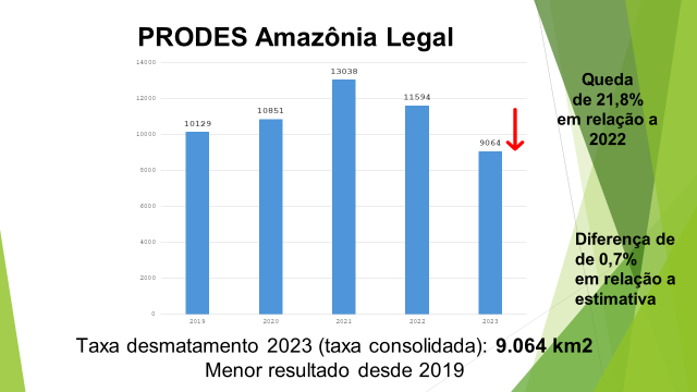 PRODES - Taxa consolidada de desmatamento na Amazônia em 2022/2023 é de 9.064 km²