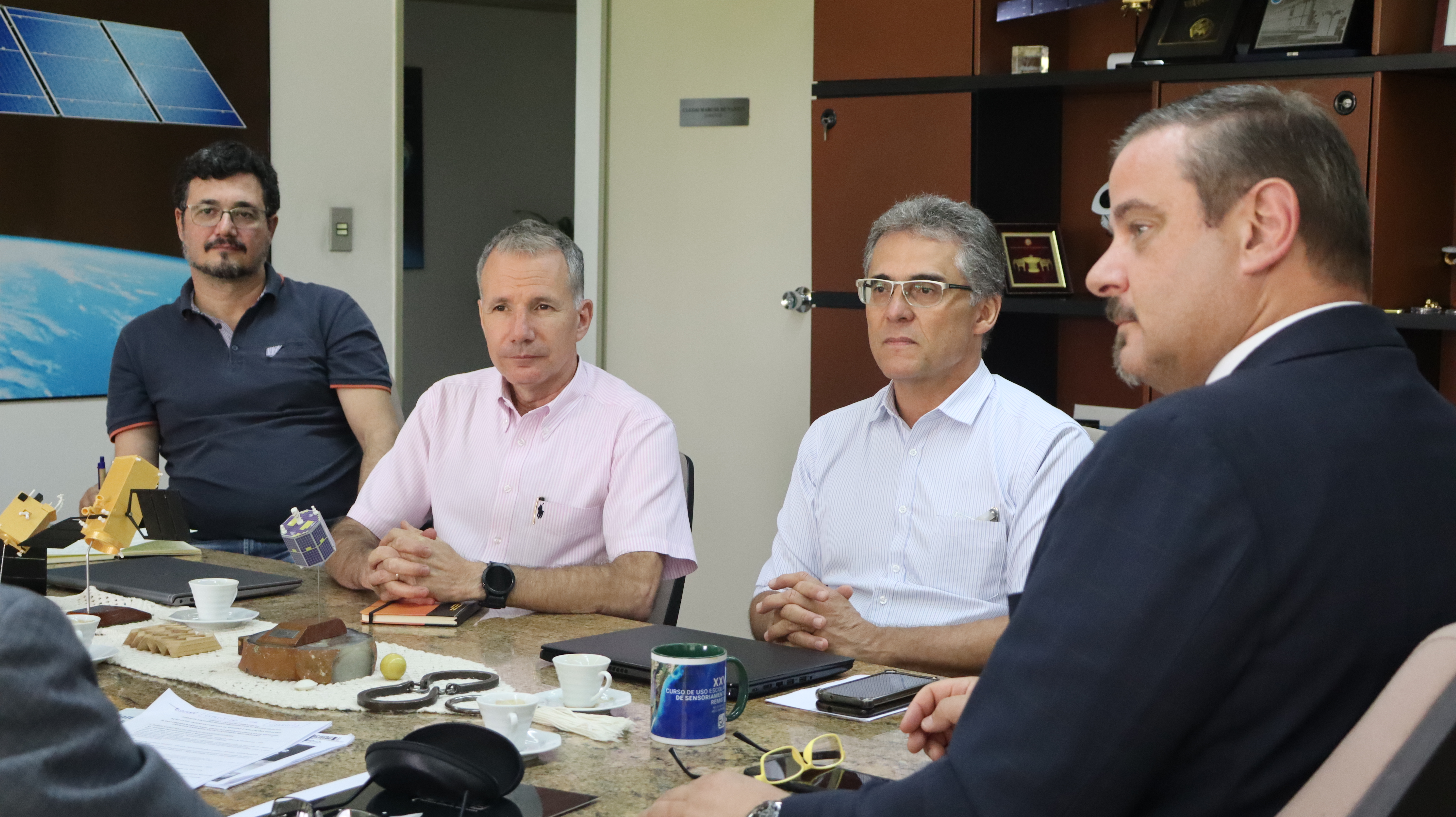 No dia 22 de janeiro de 2024, o Presidente da Agência Espacial Brasileira – AEB, Marco Antonio Chamon, acompanhado pelo Diretor da Diretoria de Gestão de Portfólio, Rodrigo Leonardi, e Coordenador da Unidade Regional de São José dos Campos, Alexandre Macedo de Oliveira, foram recebidos no INPE, pelo Diretor Clezio Marcos De Nardin, o Coordenador-Geral da Coordenação-Geral de Engenharia, Tecnologia e Ciências Espaciais, Adenilson Roberto da Silva, Chefe da Divisão de Pequenos Satélites, Antônio Carlos de Oliveira Perreira e o Chefe, Substituto, do Serviço de Relações Institucionais, Alexandre Tomio.