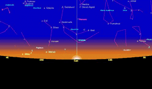 - Movimento anual aparente do Sol por entre as constelações do Zodíaco - direção do nascente - hemisfério sul (formato GIF)