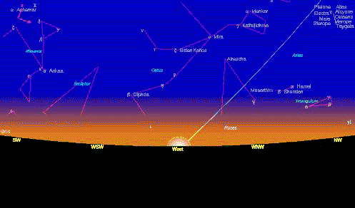 - Movimento anual do Sol por entre as constelações do Zodíaco - direção do poente - hemisfério sul (formato GIF)