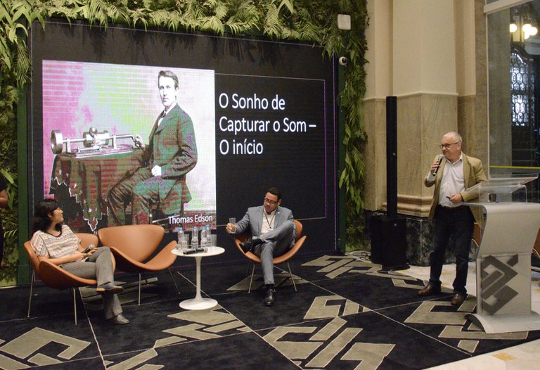 Esse foi o tema da segunda mesa-redonda, tendo como mediadora a pesquisadora do INPI Camila Mie Ujikawa. Ela e o pesquisador do INPI Alex de Lima e Silva apresentaram vários tipos de patentes, desde instrumentos musicais a métodos e sistemas de computador para áudio. O especialista em Gestão Estratégica da Inovação na Agência Inova-UFRJ, Luiz Gustavo Baptista, fez uma linha do tempo das patentes, iniciando por Tomas Edson, com as patentes de um fonógrafo e de um microfone em 1877, nos Estados Unidos, até a era digital no século 21, que traz novos desafios para proteger a criatividade e o investimento.