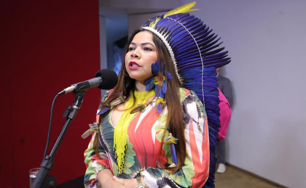 Secretária dos Povos Indígenas do Ceará, Juliana Alves Cacila Irê, apresenta o guia de termos indígenas
