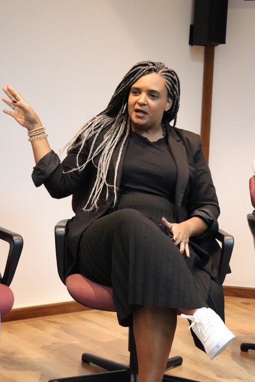 Rosângela Silva, da empresa Negra Rosa, falou de sua experiência ao criar a marca de cosméticos para pretas e da importância do registro no INPI, e Tainá Salomão, UX Researcher, finalizou o painel falando sobre a área de design, que vai além de desenhar, pois necessita de pesquisa sobre os usuários para que o produto/serviço chegue ao mercado com maior chance de sucesso.