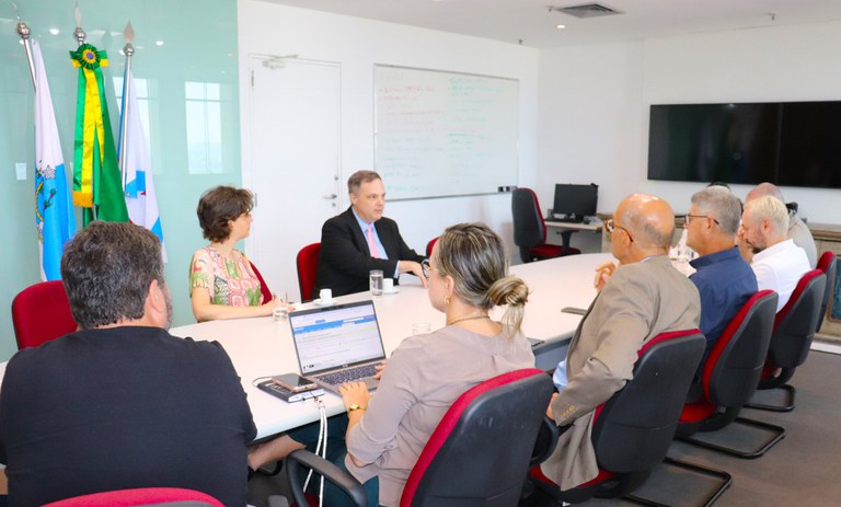 O presidente do INPI, Júlio César Moreira, deu boas-vindas ao novo adido e reforçou o compromisso de avançar na parceria com o USPTO. Também participaram da reunião todos os diretores do INPI, além da chefia de Gabinete e da Coordenação de Relações Internacionais.