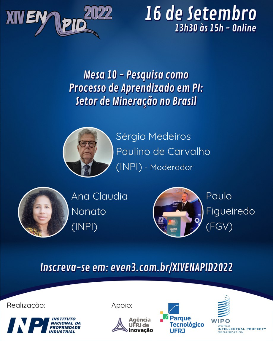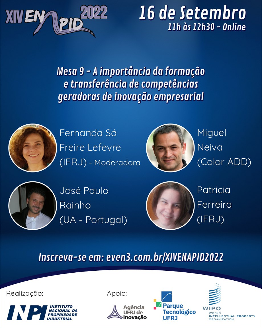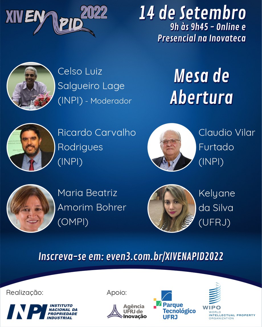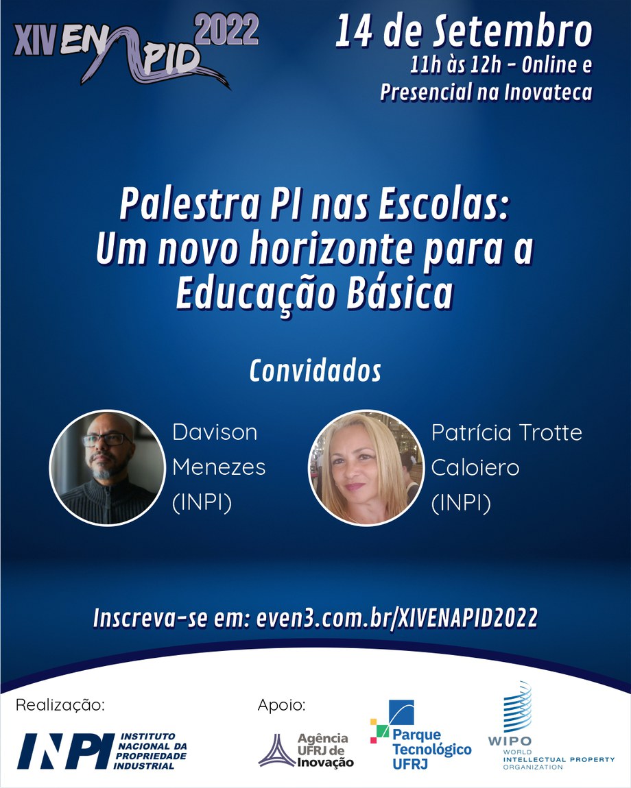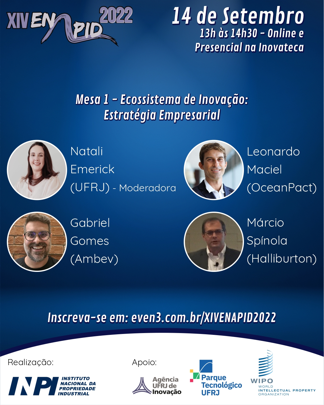 Este ano, nos dias 14, 15 e 16 de setembro, realizaremos a 14ª edição do evento, em parceria com o Ecossistema UFRJ de Inovação, tendo como tema principal, a Educação da Propriedade Intelectual, voltada para o Empreendedorismo Inovador.