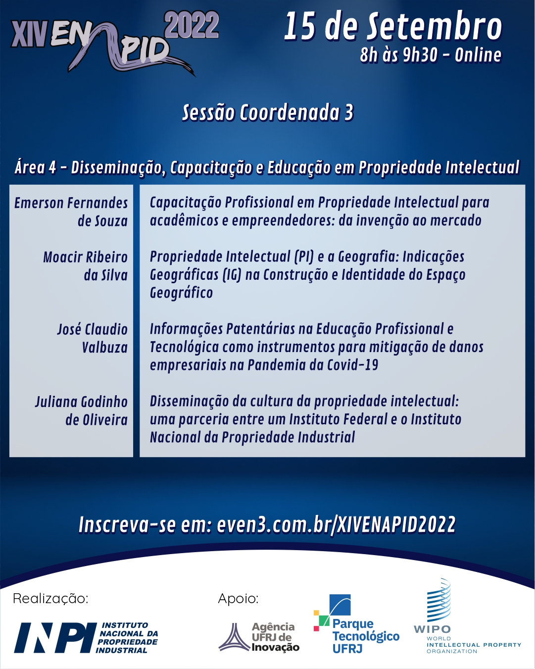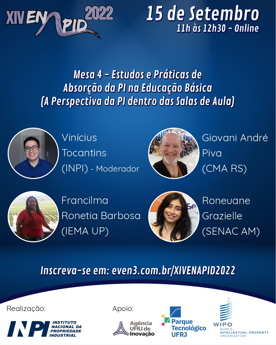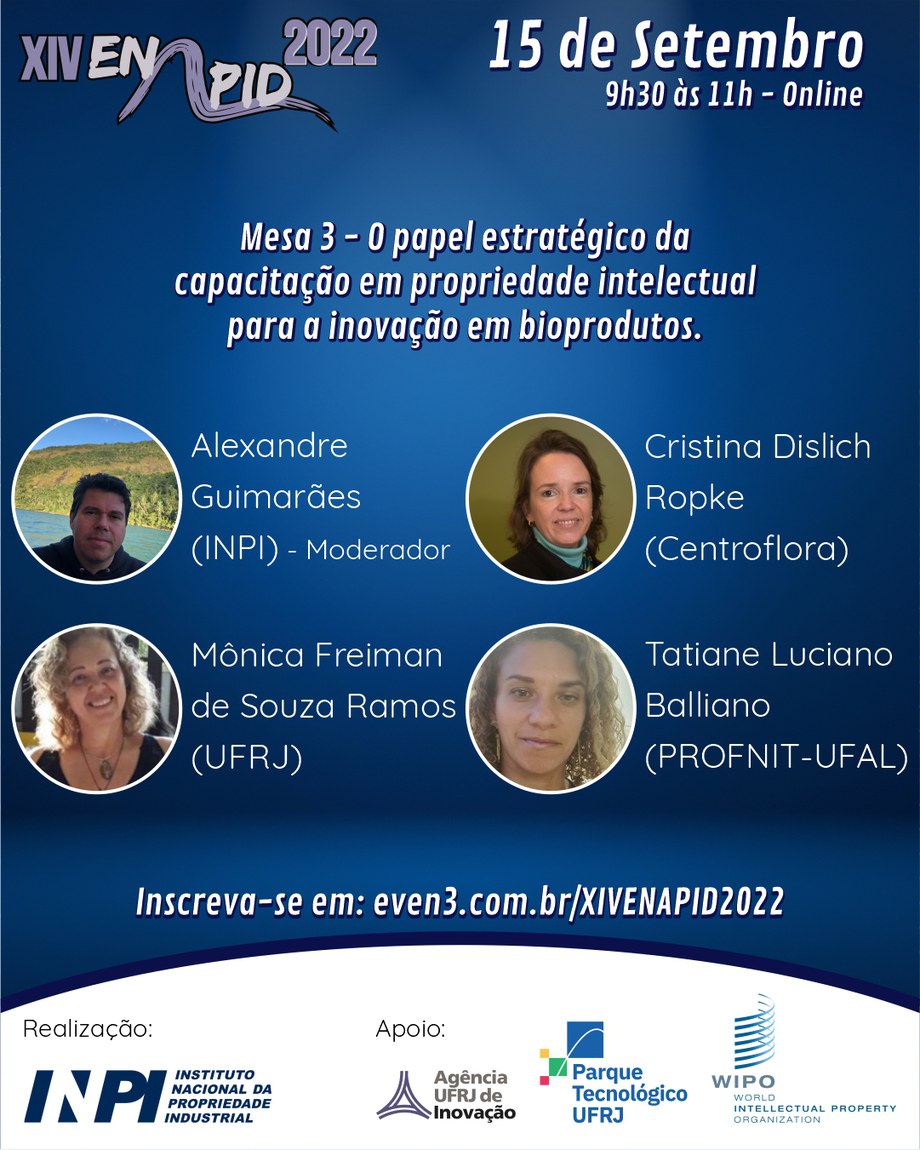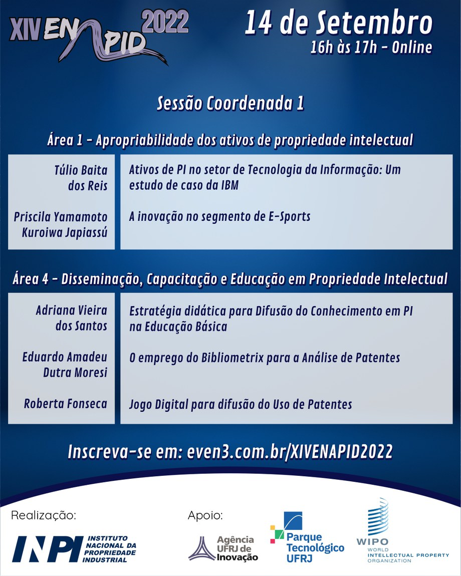 Este ano, nos dias 14, 15 e 16 de setembro, realizaremos a 14ª edição do evento, em parceria com o Ecossistema UFRJ de Inovação, tendo como tema principal, a Educação da Propriedade Intelectual, voltada para o Empreendedorismo Inovador.