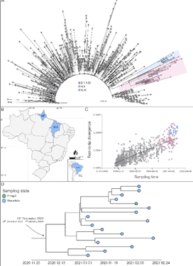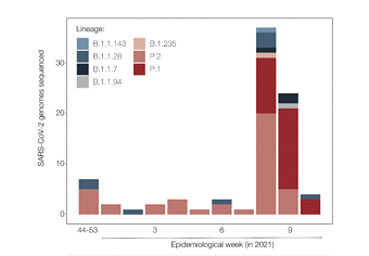 Em 15 de junho de 2021, a linhagem Lambda (C.37) do SARS-CoV-2 foi considerada uma variante de interesse (VOI) pela Organização Mundial de Saúde. Pesquisadores descreveram o primeiro relato da variante Lambda SARS-CoV-2 no sul do Brasil. A sequência descrita neste artigo apresentou todas as oito mutações de linhagem definidoras de C.37 (gene ORF1a: Δ3675-3677; gene Spike: Δ246-252, G75V, T76I, L452Q, F490S, D614G e T859N), além de outras 19 mutações . Considerando que esse VOI tem sido associado a altas taxas de transmissibilidade, a possível disseminação na comunidade do sul do Brasil é preocupante (23/06/2021). Fonde:medRixv