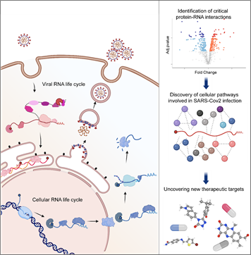 Uma equipe internacional e multidisciplinar liderada por pesquisadores da University of Oxford, University of Glasgow e University of Heidelberg, descobriu as interações que o RNA do SARS-CoV-2 estabelece com a célula hospedeira, muitas das quais são fundamentais para a infecção. A informação genética do SARS-CoV-2 é codificada em uma molécula de RNA em vez de DNA. Este RNA deve ser multiplicado, traduzido e empacotado em novas partículas virais para produzir a progênie viral. Apesar da complexidade desses processos, o SARS-CoV-2 codifica apenas um punhado de proteínas capazes de se engajar com o RNA viral. Para contornar essa limitação, o SARS-CoV-2 sequestra proteínas celulares e as redireciona para seu próprio benefício. Pesquisadores desenvolveram uma nova abordagem para descobrir de uma maneira abrangente as proteínas que se "aderem" ao RNA do SARS-CoV-2 em células infectadas. Com este método, os autores descobriram que o RNA do SARS-CoV-2 sequestra mais de uma centena de proteínas celulares, que parecem desempenhar papéis críticos no ciclo de vida viral. Uma observação inesperada deste estudo é que vírus de origens diferentes, como SARS-CoV-2 e Sindbis, sequestram um repertório semelhante de proteínas celulares. Essa descoberta é muito importante, pois proteínas celulares com papéis importantes e amplamente difundidos na infecção por vírus têm potencial como alvo para tratamentos antivirais de amplo espectro (27/05/2021). Fonte: University Oxford