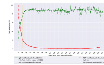 Utilizando ensaios para detectar anticorpos para proteínas do nucleocapsídeo (N) ou spike (S) realizados em amostras de 39.086 indivíduos com COVID-19 confirmado por RT-PCR, de março de 2020 a janeiro de 2021, pesquisadores analisaram taxas de soropositividade de IgG até 300 dias após o teste NAAT positivo inicial dos pacientes. A soropositividade de anticorpos IgG para as proteínas S e N do SARS-CoV-2 seguiu uma tendência linear atingindo aproximadamente 90% de positividade em 21 dias após o índice. A taxa de soropositividade da proteína N diminuiu a uma taxa mais acentuada, diminuindo para 68,2% após 293 dias, enquanto a soropositividade do anticorpo para a proteina S manteve uma taxa de 87,8% até 300 dias. Além do tipo de antígeno e do número de dias pós-PCR positivo, a idade e o sexo também foram fatores significativos na predição da soropositividade, com menores de 65 anos apresentando uma taxa de soropositividade mais sustentada. Os pesquisadores concluem que, os dados observacionais de um laboratório clínico nacional, embora limitados por uma visão epidemiológica da população dos EUA, oferecem um cronograma encorajador para o desenvolvimento e sustentabilidade de anticorpos até dez meses a partir da infecção natural e podem informar o planejamento pós-pandemia (24/05/2021). Fonte: EclinicalMedicine (The Lancet)