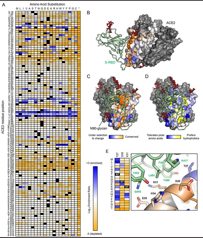 O artigo revela que ensaios de ligação proteína-proteína confirmaram que a enzima conversora de angiotensina 2 (ECA 2) tem maior probabilidade de ser o receptor celular através do qual o vírus invade a célula hospedeira. O resultado foi consistente com a análise filogenética de que o segmento de interface da proteína spike RBD pode ser adquirido pelo SARS-CoV-2 por meio de um processo evolutivo complexo, em vez de um acúmulo progressivo de mutações (14/05/2020). Fonte: Biochemical and Biophysical Research Communications