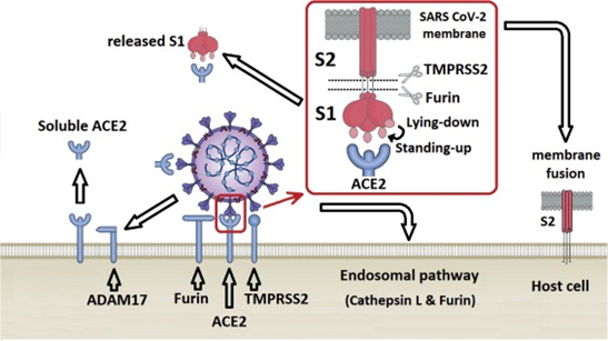 O artigo faz uma revisão do mecanismo molecular em que a infecção por SARS-CoV2 se dá, via formação de um hétero-trímero entre a sua proteína S, o receptor ACE2 e a proteína B0AT1 que é o receptor de entrada o processo infeccioso envolvendo a fusão da membrana. O modelo resultante da revisão pode ser usado para avaliação das condições infeciosas e o período de incubação.(29/04/2020). Fonte: Progress in Biophysics and Molecular Biology