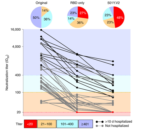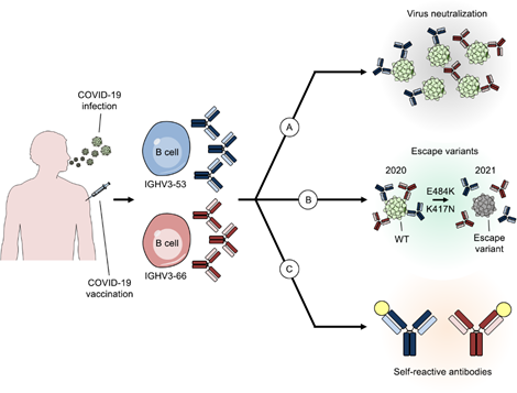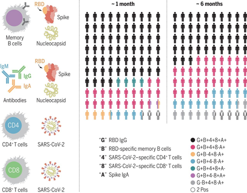 Neste estudo os pesquisadores examinaram a magnitude, amplitude e durabilidade dos anticorpos específicos para SARS-CoV-2 em dois compartimentos de células B distintos: anticorpos derivados de células plasmáticas de longa duração no plasma e células B de memória periférica junto com seus associados perfis de anticorpos obtidos após estimulação in vitro. Verificaram que a magnitude variou entre os indivíduos, mas foi a maior entre os hospitalizados. Variantes de preocupação (VoC) - Anticorpos reativos a RBD foram encontrados no plasma de 72% das amostras neste estudo, e células B de memória reativas a VoC-RBD foram encontradas em todos, exceto 1 indivíduo em um único ponto no tempo. Essa descoberta, de que os MBCs reativos a VoC-RBD estão presentes no sangue periférico de todos os indivíduos, incluindo aqueles que apresentaram doença assintomática ou leve, fornece uma razão para otimismo em relação à capacidade de vacinação, infecção anterior e / ou ambos, para limitar a gravidade da doença e transmissão de variantes preocupantes à medida que continuam a surgir e a circular (03/06/2021). Fonte: medRxiv
