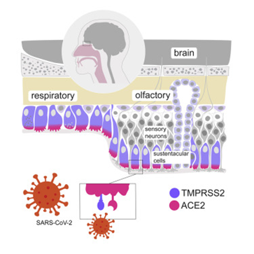 Revisão revela que o vírus COVID-19 explora o uso do receptor da enzima conversora de angiotensina 2 para obter a entrada celular. A expressão da enzima conversora de angiotensina 2 no tecido neurológico responde os sintomas frente a percepção do paladar (06/05/2020). Fonte: J Craniofac Surg