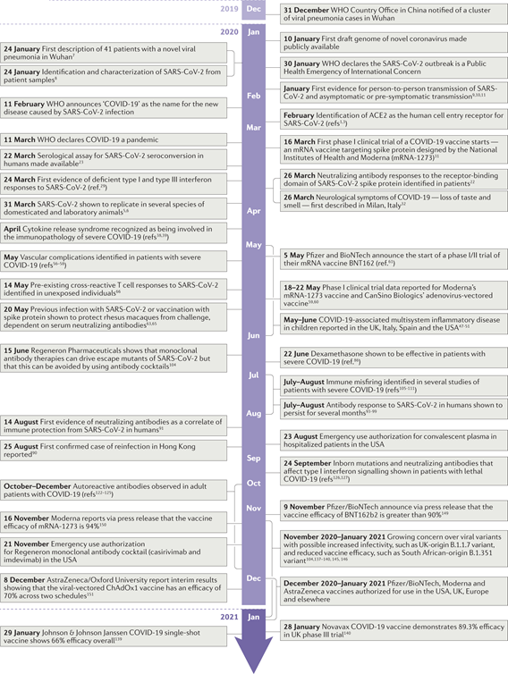 Revisão, fornece uma sinopse da estrutura genômica e evolução do SARS-CoV-2 e os esforços atuais para produzir vacinação eficaz e estratégias terapêuticas para a infecção pelo SARS-CoV-2. A maioria das estratégias terapêuticas é baseada no reposicionamento de agentes terapêuticos existentes usados contra várias infecções virais e focada principalmente na inibição do ciclo de replicação do vírus, aumento da imunidade inata e alívio da SRC causada por COVID-19. Atualmente, mais de 100 ensaios clínicos sobre COVID-19 visam fornecer evidências robustas sobre a eficácia das substâncias antivirais anti-SARS-CoV-2 atualmente disponíveis, como o análogo de nucleotídeo remdesivir, o medicamento antimalárico cloroquina e medicamentos direcionados contra docking de SARS-CoV-2 para a enzima conversora de angiotensina associada à membrana 2 (ECA2), como protease serina transmembrana 2 (TMPRSS2). A atual campanha de vacinação está em andamento em todo o mundo usando diferentes tipos de vacinas como Pfizer-BioNTech e Moderna, Johnson & Johnson, Oxford-AstraZeneca, Novavax e outras com eficácia variando de 72 a 95% (16/08/2021). Fonte: Molecular Biology Reports
