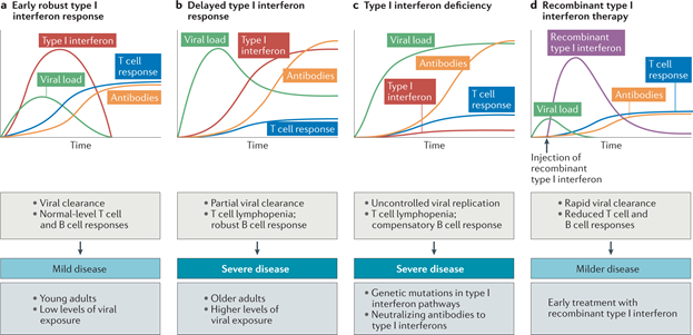 Estudo demonstrou que autoanticorpos circulantes (auto-Abs) neutralizando altas concentrações de IFN-α e / ou -ω são encontrados em cerca de 10% dos pacientes com pneumonia crítica por COVID-19, mas não em indivíduos com infecções assintomáticas. Foram detectados auto-Abs em 13,6% de 3.595 pacientes com COVID-19 crítico, incluindo 21% de 374 pacientes > 80 anos e 6,5% de 522 pacientes com COVID-19 grave. Esses anticorpos também são detectados em 18% dos 1.124 pacientes falecidos (idade 20 dias-99 anos; média: 70 anos). Foi demonstrado também em uma amostra de 34.159 indivíduos não infectados da população em geral, que auto-Abs neutralizando altas concentrações de IFN-α e / ou -ω estão presentes em 0,18% dos indivíduos entre 18 e 69 anos; 1,1% entre 70 e 79 anos e 3,4% > 80 anos. Além disso, a proporção de indivíduos com concentrações mais baixas de auto-Abs neutralizantes é maior em uma subamostra de 10.778 indivíduos não infectados: 1% de indivíduos < 70 anos; 2,3% entre 70 e 80 anos e 6,3% > 80 anos. Estudo conclui que Auto-Abs neutralizantes de IFNs do tipo I são anteriores à infecção por SARS-CoV-2 e aumentam drasticamente na prevalência após os 70 anos de idade. Eles são responsáveis por cerca de 20% dos casos críticos de COVID-19 em pessoas com mais de 80 anos e do total de casos fatais de COVID-19 (19/08/2021). Fonte: Science Immunology