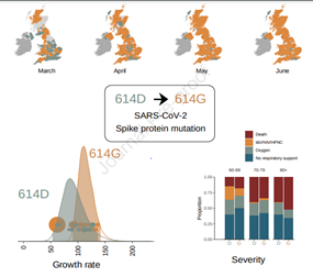Ao analisar genomas SARS-CoV-2 recém-coletados e compará-los a seu estudo anterior sobre variantes de nucleotídeo único (SNVs) SARS-CoV-2 antes de junho de 2020, pesquisadores descobriram que o agrupamento SNV mudou notavelmente desde junho de 2020. Além disso, grupo de SNVs tornou-se dominante, o que é representado por duas mutações não sinônimas A23403G (S: D614G) e C14408T (ORF1ab: P4715L). Uma investigação posterior revelou conjuntos de SNVs específicos para a idade e/ou sexo dos pacientes, ou fortemente associados à mortalidade. O presente modelo de regressão logística explorou recursos que contribuem para o status de mortalidade, incluindo 3 SNVs críticos, G25088T (S: V1176F), T27484C (ORF7a: L31L) e T25A (a montante de ORF1ab), idades acima de 40 anos e o sexo masculino. Os choques na estrutura da proteína introduzidos por mutações podem afetar a patogênese viral por meio da alteração da conformação da proteína, levando à diferença na transmissão e virulência. Particularmente, exploraram que os SNVs não sinônimos tendem a ocorrer em regiões desordenadas intrínsecas (IDRs) de Spike (S) e ORF1ab para aumentar significativamente a hidrofobicidade, sugerindo um papel potencial na alteração do dobramento de proteínas relacionado à evasão imune (10/07/2021). Fonte: Journal of Medical Virology