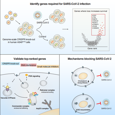 Artigo descreve um pipeline de triagem para a descoberta de inibidores eficazes de SARS-CoV-2. Os pesquisadores rastrearam a melhor biblioteca de reaproveitamento de fármacos da classe, ReFRAME, contra dois ensaios de infecção de imagem de alto rendimento e alto conteúdo: um usando células HeLa que expressam o receptor ECA2 de SARS-CoV-2 e o outro usando células epiteliais de pulmão Calu-3. De quase 12.000 compostos, os pesquisadores identificaram 49 (em HeLa-ACE2) e 41 (em Calu-3) compostos capazes de inibir seletivamente a replicação do SARS-CoV-2. Entre esses resultados promissores, os antivirais nelfinavir e o progenitor do pró-fármaco MK-4482 possuem desejáveis atividades in vitro, perfis farmacocinéticos e de segurança humana, e ambos reduzem a replicação de SARS-CoV-2 em um modelo de célula primária diferenciada humana ortogonal. Além disso, o MK-4482 bloqueia efetivamente a infecção por SARS-CoV-2 em um modelo de hamster. No geral, os pesquisadores identificaram antivirais de ação direta como os compostos mais promissores para o reaproveitamento de fármacos, compostos adicionais que podem ter valor em terapias de combinação e compostos de ferramenta para identificação de alvos de células hospedeiras virais (03/06/2021). Fonte: Nature
