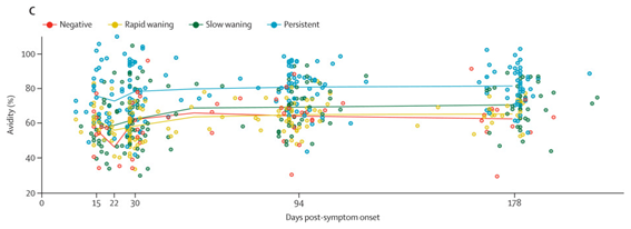 Estudo busca avaliar a cinética da maturação da avidez de IgG durante a infecção por SARS-CoV-2 obtida de 217 participantes da coorte de Ischgl, Áustria, foi estudada durante 7-8 meses (acompanhamento) após a infecção. O ensaio de avidez de IgG, utilizando um IgG ELISA modificado e um teste de ureia 5,5 M, revelou que a idade avançada não diminui o aumento da avidez, detectado em todos os participantes positivos em ambos os momentos, de 18% a 42%. A alta avidez foi associada a uma marcante capacidade de neutralização residual em 97,2% dos participantes (211/217), que foi ainda maior na faixa etária mais velha, revelando um papel importante dos testes de avidez como testes substitutos fáceis e baratos para avaliar a maturação de o sistema imunológico transmitindo proteção potencial contra outras infecções por SARS-CoV-2 sem a necessidade de ensaios de neutralização caros e trabalhosos (04/06/2021). Fonte: The Journal of Infectious Diseases