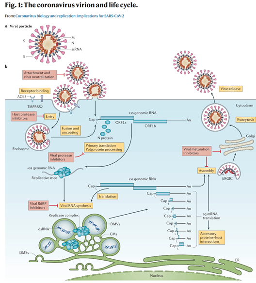 O artigo de revisão que fornece uma visão ampla da epidemiologia da COVID-19, etiologia genômica, resultados de análises recentes de mapas transcriptômicos, interação de proteínas viral e humana, diagnóstico molecular, o estado atual do desenvolvimento de novas vacinas e novas intervenções terapêuticas como plasma convalescente e ECA2. Além disso, o artigo fornece uma lista de recursos que ajudarão a comunidade científica a acessar vários tipos de bancos de dados como os OMICs do SARS-CoV-2 e as abordagens terapêuticas relacionadas ao tratamento da COVID-19, a saber: ritonavir-lopinavir, favipiravir, cloroquina/hidroxicloroquina, Remdesivir , SNG001(interferon beta) e proteína cinases ativadas por p21 (PAKs) (10/05/2020). Fonte: Viruses