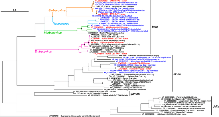 Estudo realizou uma análise filogenética de reconstrução estrutural das glicoproteínas spike SARS- CoV2 e fizeram uma comparação e os resultados revelaram que são mais semelhantes àqueles isolados de betacoronavírus dos morcegos (06/05/2020). Fonte: Journal Medical Virology