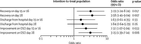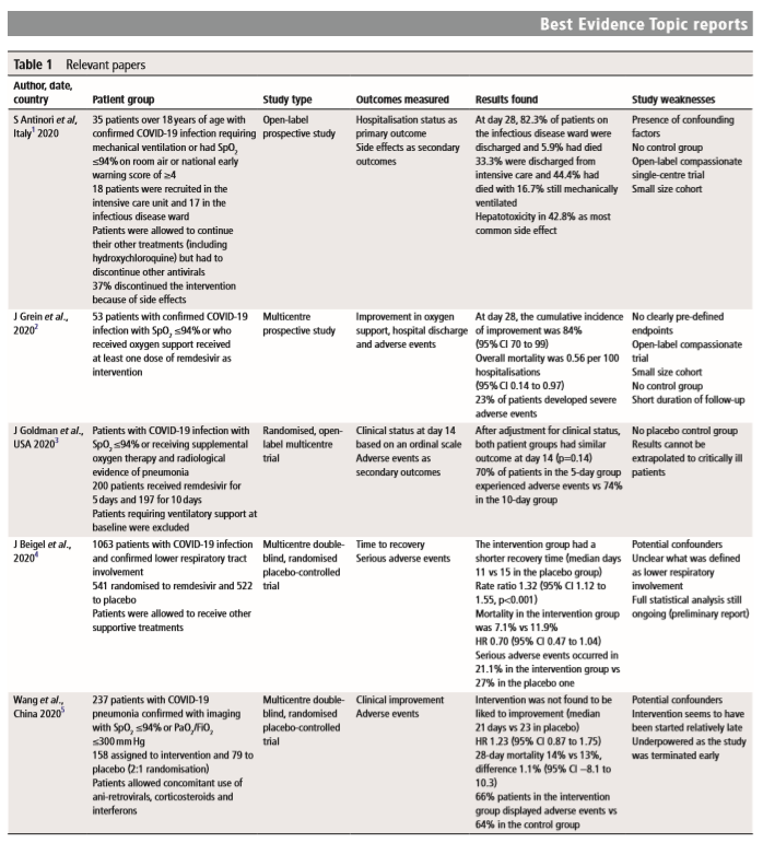 Uso compassivo de remdesivir, um pró-fármaco análogo de nucleotídeo que inibe a enzima RNA polimerase viral, apresentou benefícios em pacientes com COVID-19. A melhora clínica foi observada em 36 de 53 pacientes. Estudos randomizados e controlados são necessários para avaliação da eficácia do medicamento (10/04/20). Fonte: The New England Journal.