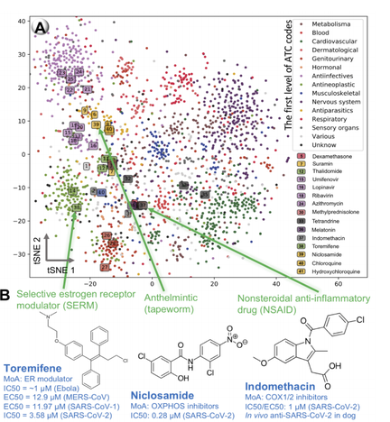 Estudo identifica novas funções e mecanismos de genes correlacionados com ACE2, o mediador da entrada de SARS-CoV-2 nas células. Através de estudos de interação estrutura atividade (QSAR) feito in silico, o artigo propõe novos candidatos a serem estudados no tratamento do coronavírus como nimesulida, propionato de fluticasona, tiabendazol, photofrin e didanosine. (06/04/2020) Fonte: Researchgate