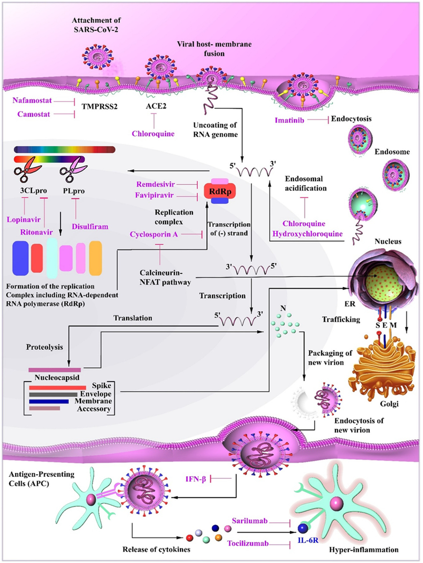 Pesquisadores demonstram que há dois processos principais responsáveis pela patogênese do COVID-19. Nos estágios iniciais da infecção, a doença é determinada principalmente pela replicação do vírus. Nos estágios mais avançados da infecção, por uma resposta imune/inflamatória excessiva, levando a danos nos tecidos. Portanto, as principais opções de tratamento são os antivirais e os imunomoduladores / anti-inflamatórios. Os pesquisadores vem demonstrando que fármacos deveriam ser reaproveitados na terapia com COVID-19, incluindo entre eles, remdesivir, favipiravir, tocilizumabe e baricitinibe. O objetivo desta revisão foi destacar (com base em evidências clínicas existentes e acessíveis em ensaios em andamento) os medicamentos promissores atuais e disponíveis para COVID-19 e delinear suas características (21/05/2021). Fonte: International Journal of Molecular Sciences