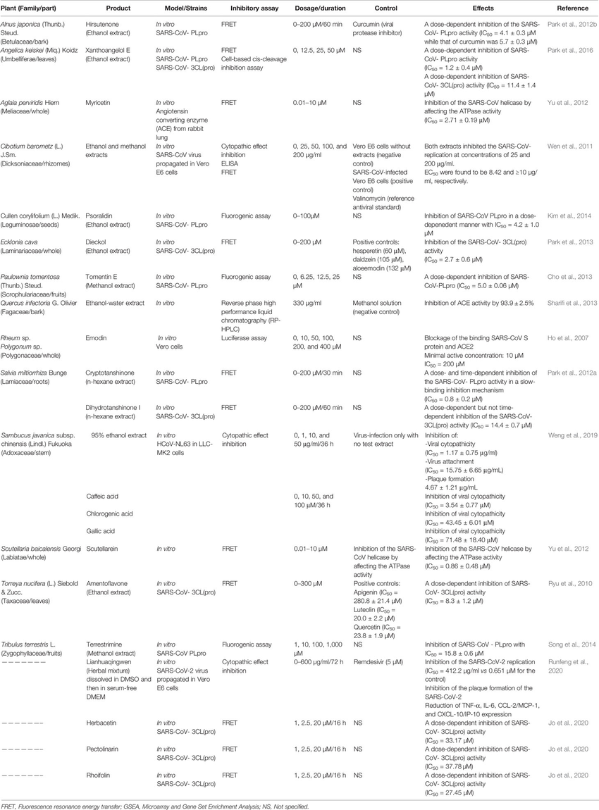 Os pesquisadores Jia Xy e Yunfei Zhang mostram que a China vem utilizando Medicina Tradicional Chinesa (MTC) nos hospitais para apoiar o tratamento do COVID-19. Esses medicamentos fitoterápicos já foram usados para prevenir e tratar a SARS e a infecção causada pelo H1N1 e neste momento mostra reduzir os sintomas de pacientes contaminados pelo COVID-19. Como preventivo é usado o Yupingfeng San. No suporte do tratamento clínico dos pacientes com infecção leve são usados o Sangju yin (casos com tosse grave) e Yinqiao san (casos de febre alta). Em casos de infecções graves são usados Maxingshigan tang (decocção) e Baihegujin tang, que ajudam o pulmão na expulsão do catarro e na obtenção de ar. O artigo mostra a composição dos medicamentos (02/04/2020). Fonte: Complementary Therapies in Clinical Practice.